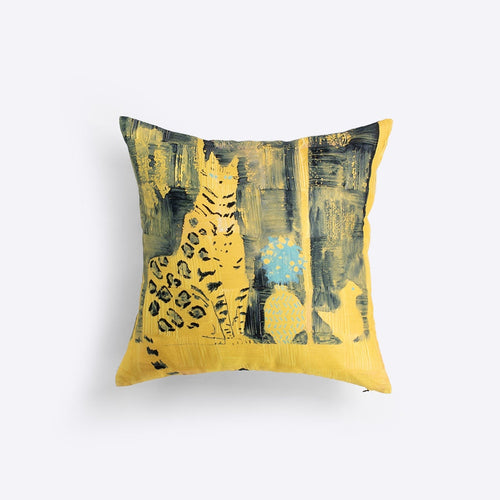 汎用性の高い45×45cmのクッションカバー。素材は手触りの良いオックスコットンを使用。リビングやベッドでくつろぐ時間に、心地よさを運んでくれます。国内で一貫生産されたこだわりのあるコットンが、アーティスト作品の魅力を引き立てます。