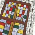 作品はステンドグラスのようにも見えますが、窓に映り込む光や影を表現しています。