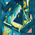 別の大きな作品を描いていたとき、その画面の中に三角形の構造物のようなものが自然と現れました。その三角形の構造物をピックアップして描いた作品が《つながりを求めて交信する》です。