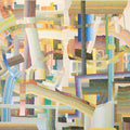 線を一本一本描いていくことで、手書きでできる歪みによって思わぬ形ができるように、隣り合う色と色が混じり合って思わぬ色がみえるように制作しています。