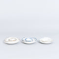 白波、紺碧、潮騒の3色のスタッキングプレート。波をイメージした緩やかな曲線と色彩の滲みが特徴。三つを重ねると揺蕩うようなリズムが生まれます。